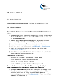 Info-Mail from 1. June 2024 Dear Sir or Madam, the invitation link to the live version of the Union Database (UDB) was sent today to the person in your company registered in the REDcert database…