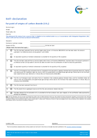 Self–declaration for point of origins of carbon dioxide (CO2) Point of origin: Street: Postal code, city: Country: The delivered CO2 stems from a source that is eligible to be credited under e ex-use…